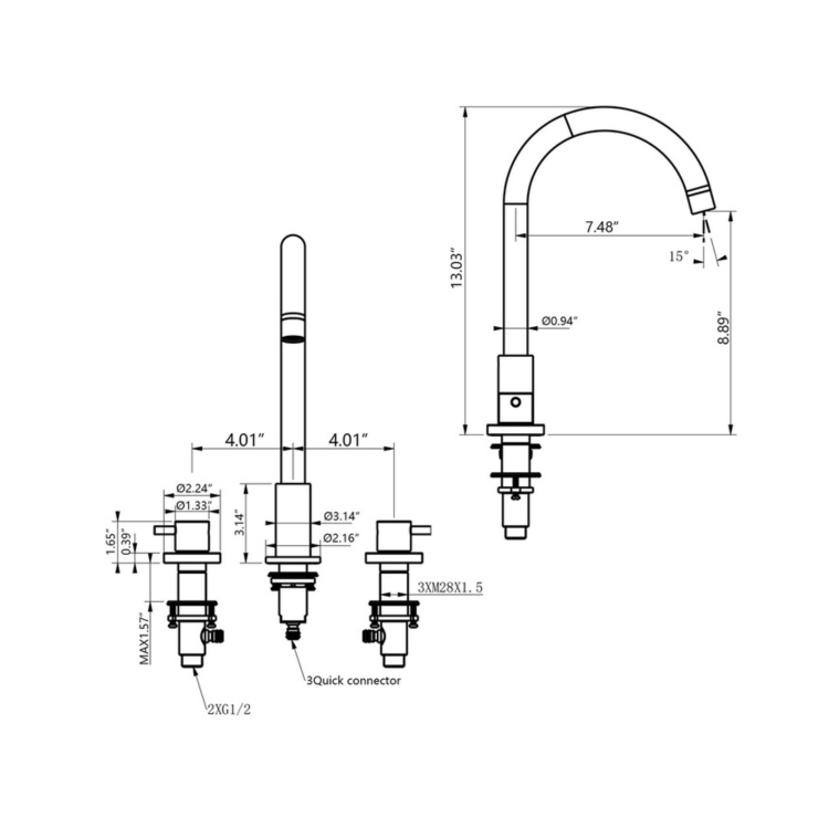 - Faucet Total Height: 13.03″