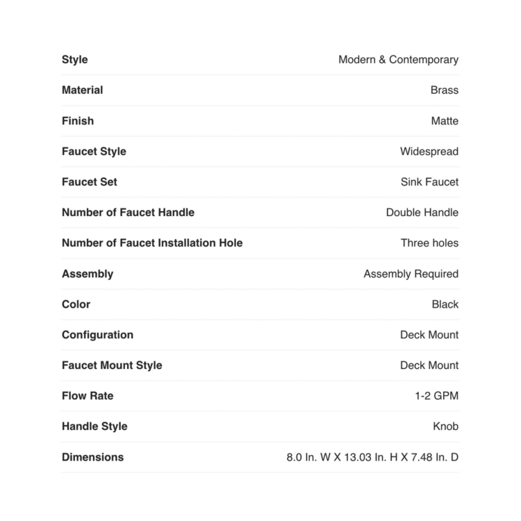 - Function: Widespread Faucet