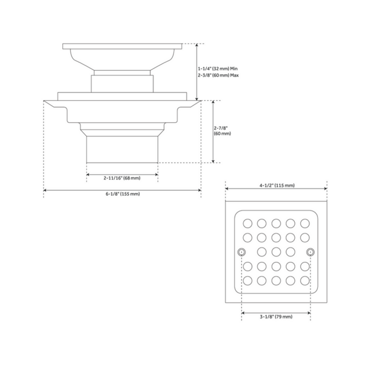 This brass drain, tile-in strainer provides a seamless and elegant look. Its adjustable height ensures perfect installation. Crafted from corrosion-resistant brass, this drain is built to last and comes with a 2″ or 3″ PVC connection for easy installation.